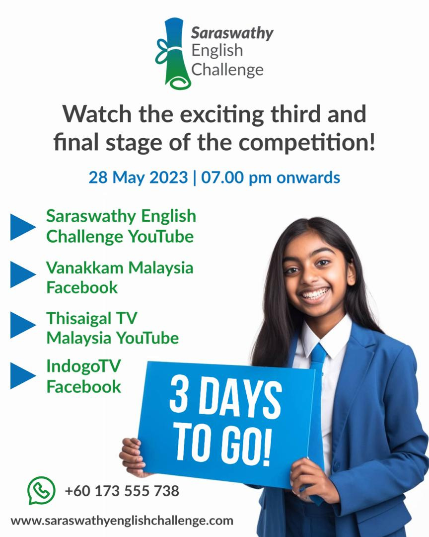 We are delighted to announce that we have received an overwhelming response of 1200 participants representing 250 Tamil schools across Malaysia. We would like to commend all the participants for their remarkable effort, enthusiasm, and performance. It's a matter of great pride for us to witness the impressive English speaking skills of students belonging to the Indian B40 community. We are excited to announce the semi-finalists below who have been selected based on their language proficiency, content, and B40 background checks. We wish all the semi-finalists the very best for the upcoming semi-finals and encourage all other participants to keep up their efforts in mastering the English language for a promising future. All the participants will receive a certificate of participation.3 Days to go